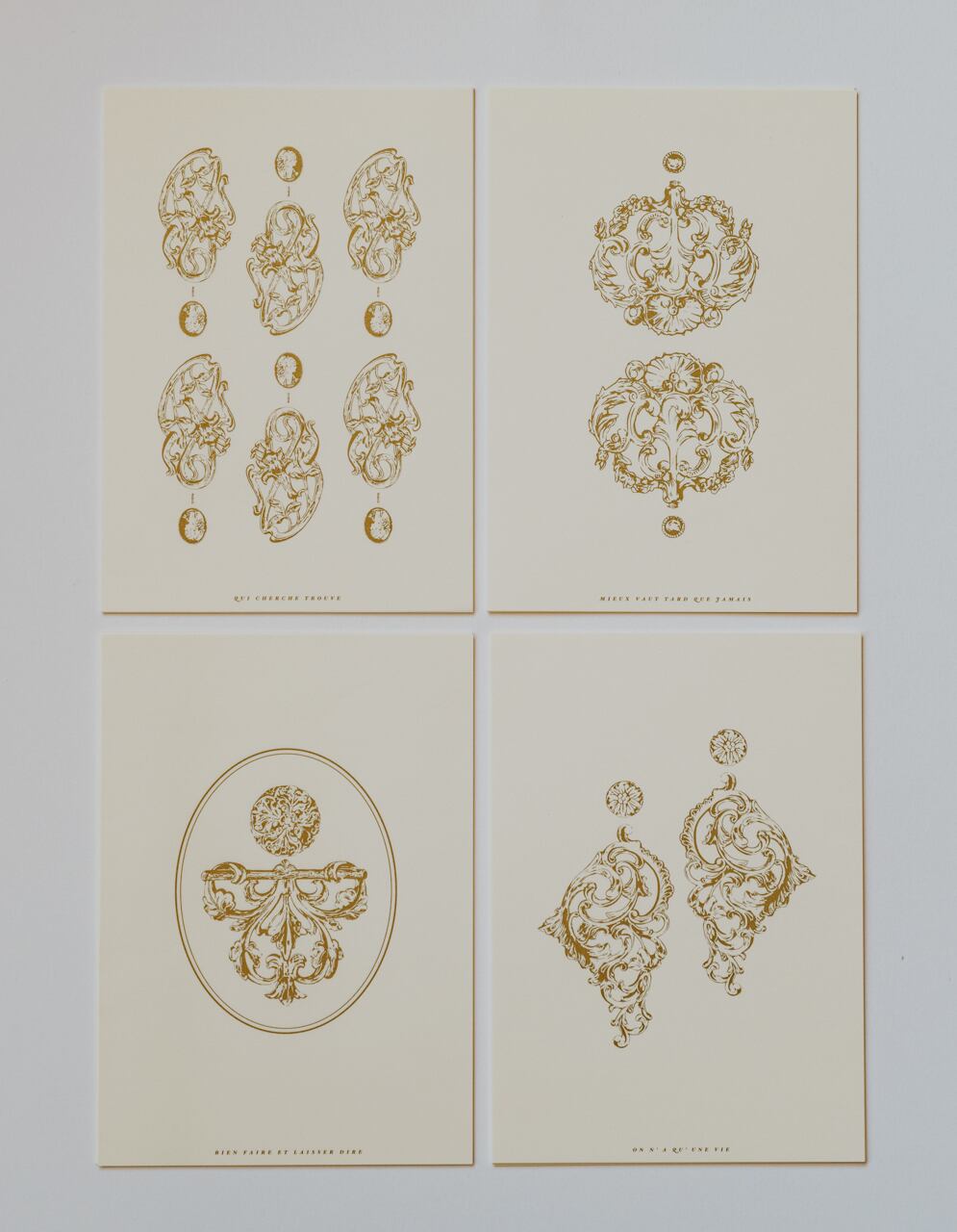 ヴィンテージパーツは数量限定で、手に入る機会が限られています。そこで、その美しいデザインを残すために、イラストレーターのAyaがデッサンに起こし、新たなデザインを加えて便箋として仕上げました。