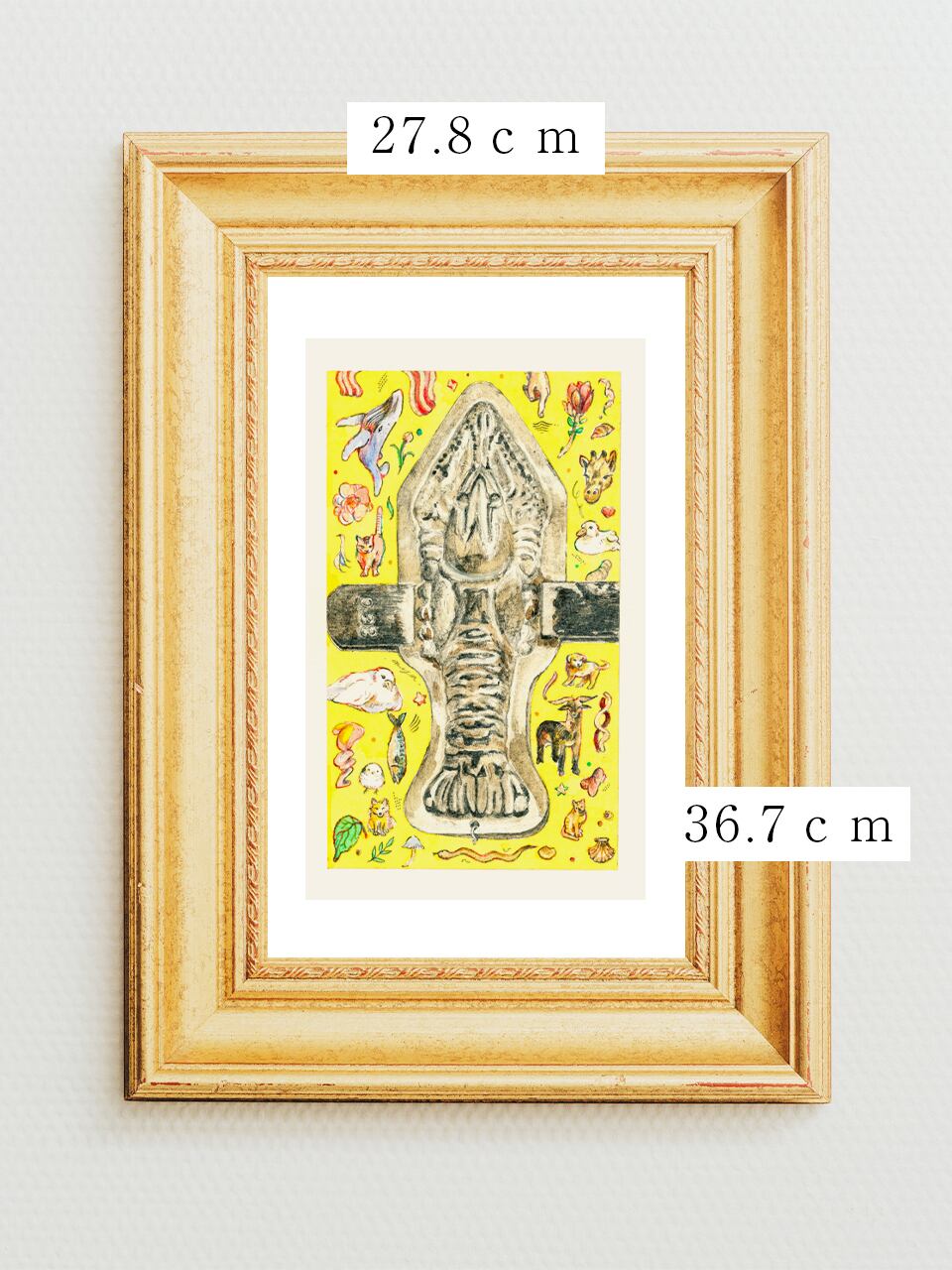 こちらの作品は、すべて描き下ろしのフルカラーイラストを、フランスの蚤の市で見つけたヴィンテージの額に額装したものです。